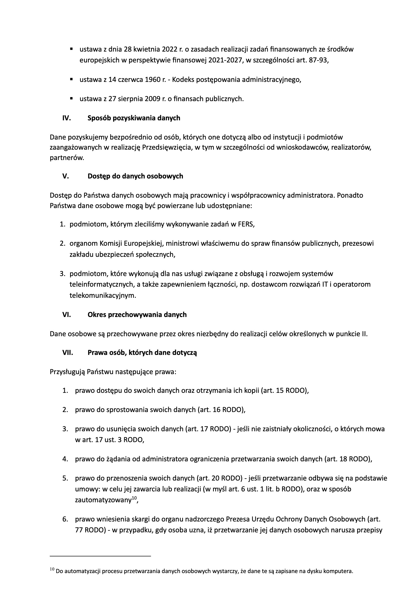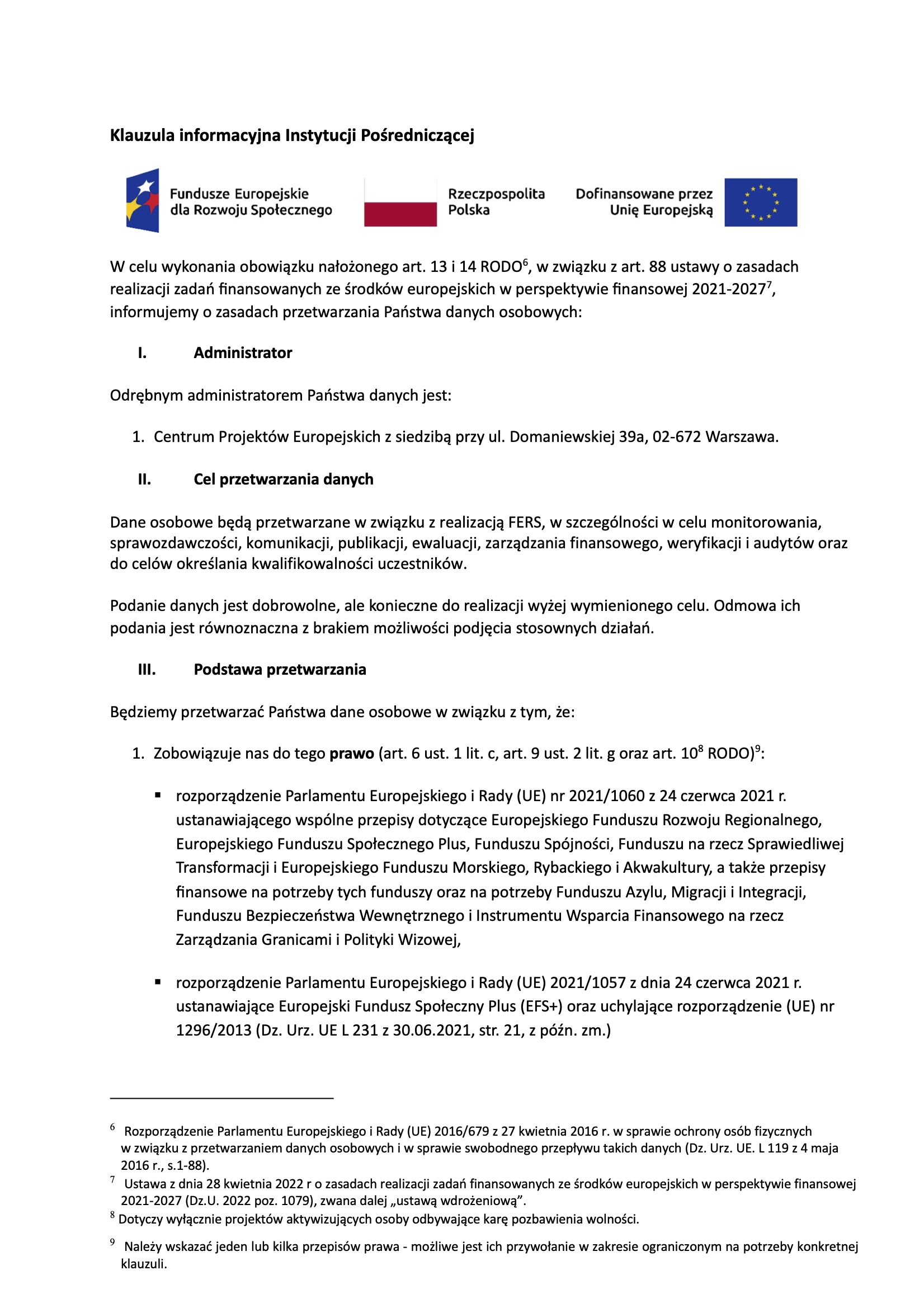 Klauzula informacyjna Instytucji Pośredniczącej